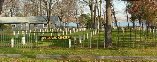 Within Johnson’s Island, surrounded by mostly private residential property, lies the Confederate Stockade Cemetery. It is located near Marblehead Peninsula on Lake Erie near Sandusky. The entire island served as a prison camp for Civil War Confederate soldiers between 1862 and 1865.