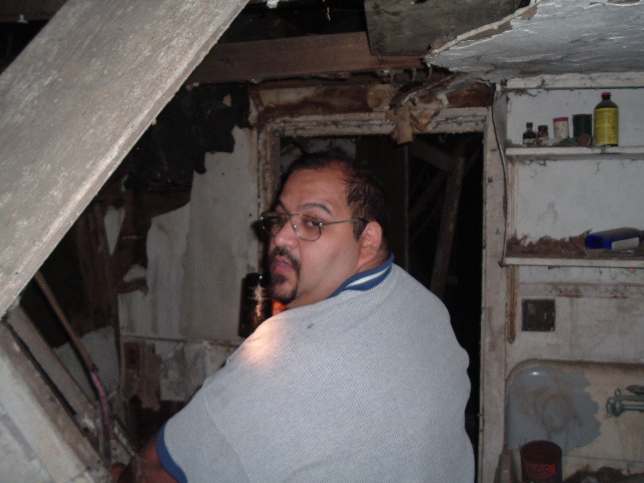- Face looking out of cabin