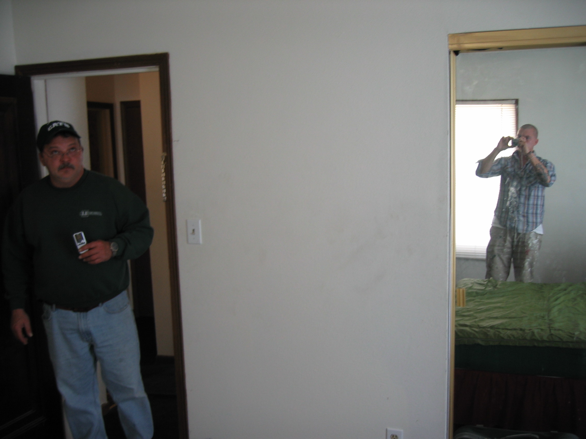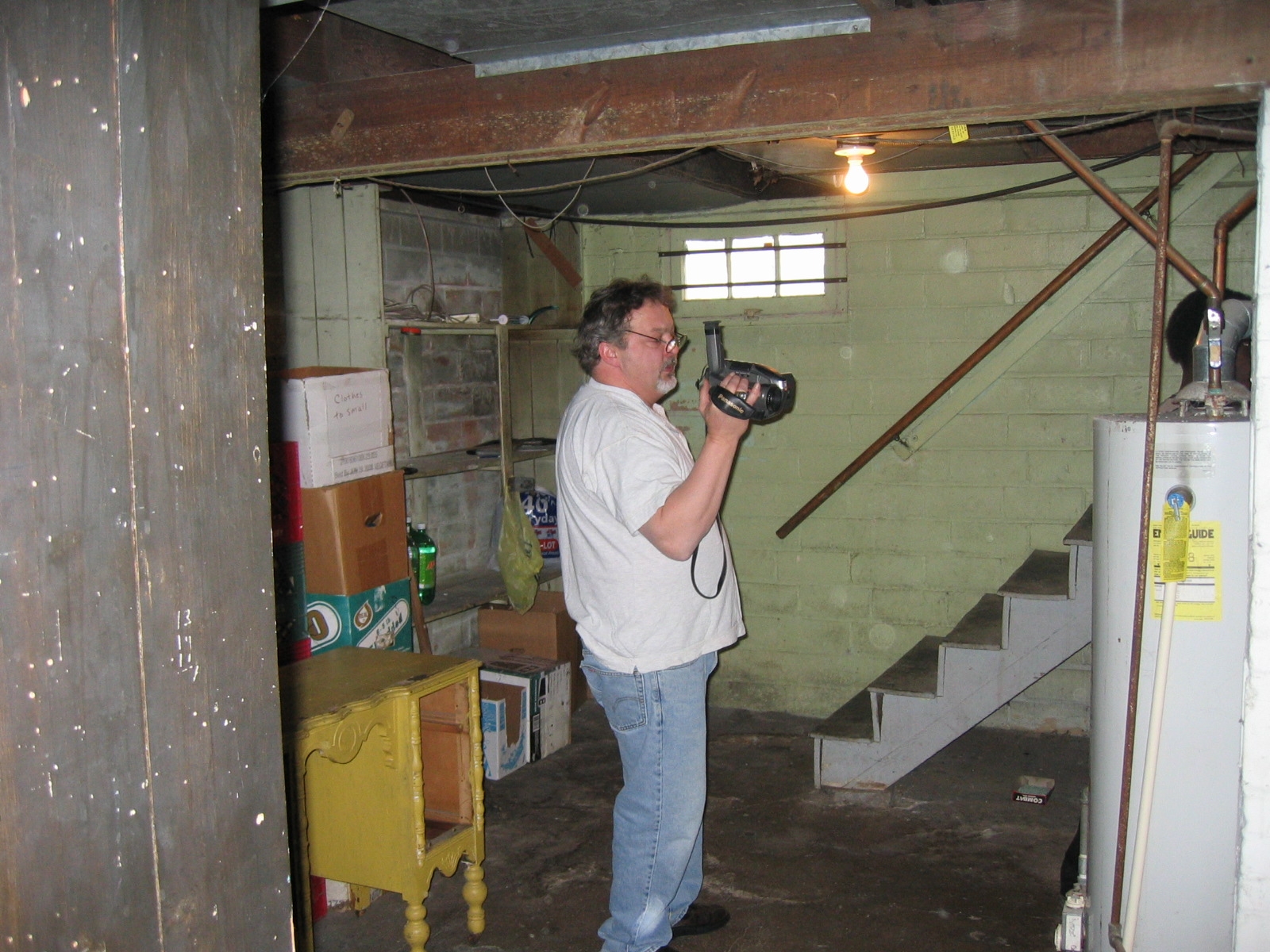 First Investigation – Butch, Joe, Mike, Marie and myself did the first investigation taking over two hundred digital pictures. We had four video camera’s running throughout the investigation, Two EVP recorder’s, 1 EMF machine taking readings in each room, 3 motion detectors, 1 Laser thermometer reading the temperature fluctuations from room to room and several other pieces of investigative equipment. We did not have any personal experiences during our first investigation but was called back into the home as we were leaving to witness water that had been thrown across the ceiling.