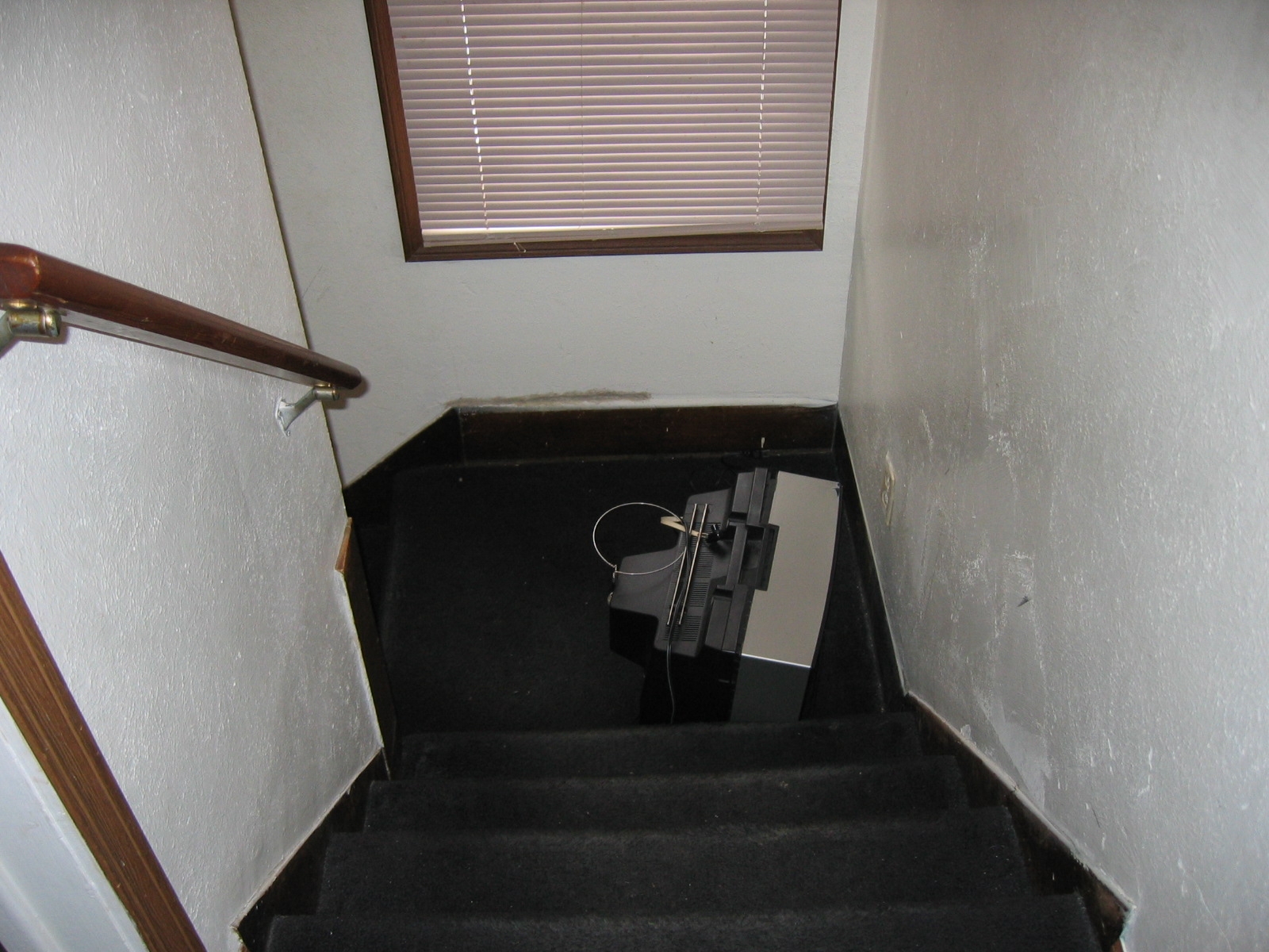 Third Investigation: Butch and I went alone on this investigation and as we entered through the front door with Beth and her Grandson Bill we realized that the couch had been turned on end and placed in the middle of the living room,  A television had been thrown down a flight of stairs, The kitchen ceiling had collapsed due the water that had been left running from our last visit, The refrigerator was moved across the kitchen with the door open and it’s contents thrown to the floor.  While Butch and I tried to stay calm and investigate we both wondered how we would explain all this as normal activity and not paranormal activity. The investigation got weirder as we went. While Beth and Bill were in the kitchen trying to clean up the mess that was made by their unwanted guest, Butch and I worked the upstairs and cellar area’s. While we were upstairs we heard a huge crashing sound downstairs, Running downstairs we found Beth and Bill standing in the middle room staring at the same thing Butch and I were, A huge object had been thrown across the living room and into a hanging picture on the wall, Both were broken during this activity. After we all calmed down Butch and I went back to our investigation and Beth and Bill went back to cleaning up the kitchen mess. This whole thing continued several times until I was almost hit in the head with a flying object as I came down the stairs and walked into the living room. As weird as this whole evening was Butch and I managed to capture as much possible evidence as we could during the three hours spent in the home that night.
