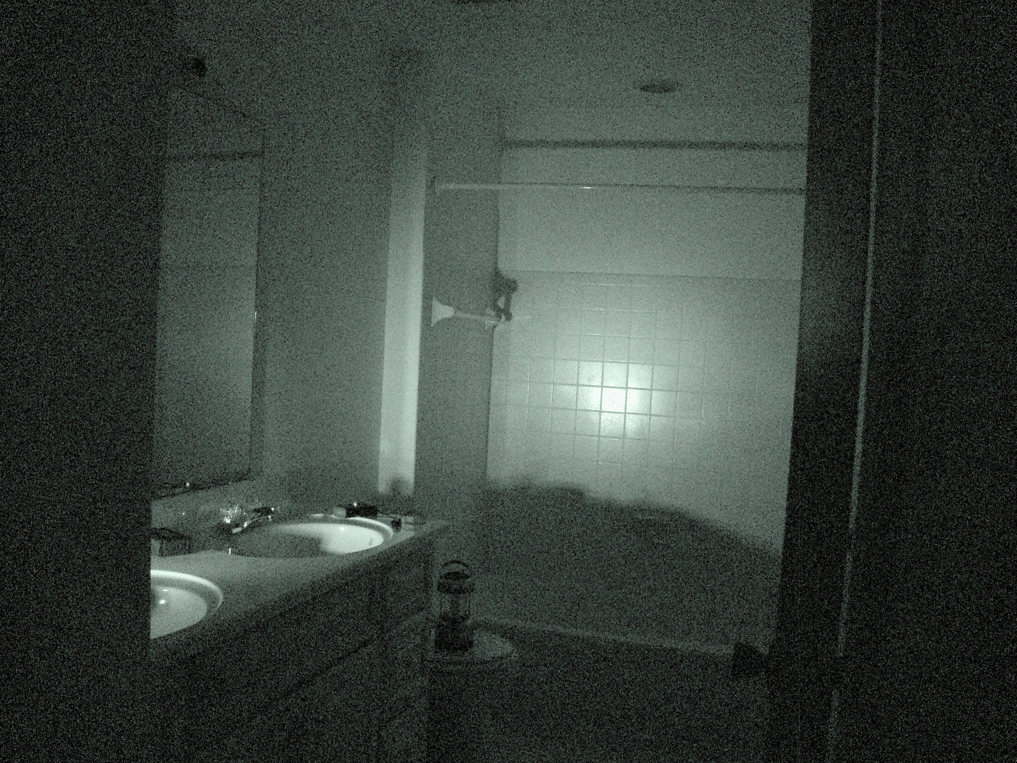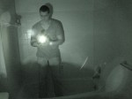 TOGHS members Butch, Mike, Marie, Becky, Chris and I along with our newest member Gina arrived at the home on Friday September 18, 2009 around 8:00 in the evening. The temperature was in the mid 70’s and overcast. Our client Kevin was present to assist in anyway necessary. Once inside the home we set up 3 DVR video cameras, one in the master bedroom upstairs, another in the main bathroom on the second floor and another in the downstairs living room. We then set up a fourth night vision video camera in the Daughter’s bedroom were the shaking bed incident occurred. Butch thought it would be a good idea to set up one extra cassette recorder in the upstairs bathroom as well. We finished our opening prayers and immediately began our investigation. Chris started by recording temperature readings throughout the home while Butch took EMF readings. During the investigation Chris and Mike ran the two hand held video cameras and would follow each investigator documenting the entire investigation. During the first hour I took as many digital still photos as possible while Becky and Marie took turns recording their EVP sessions, Butch worked with Gina also recording EVP sessions.
