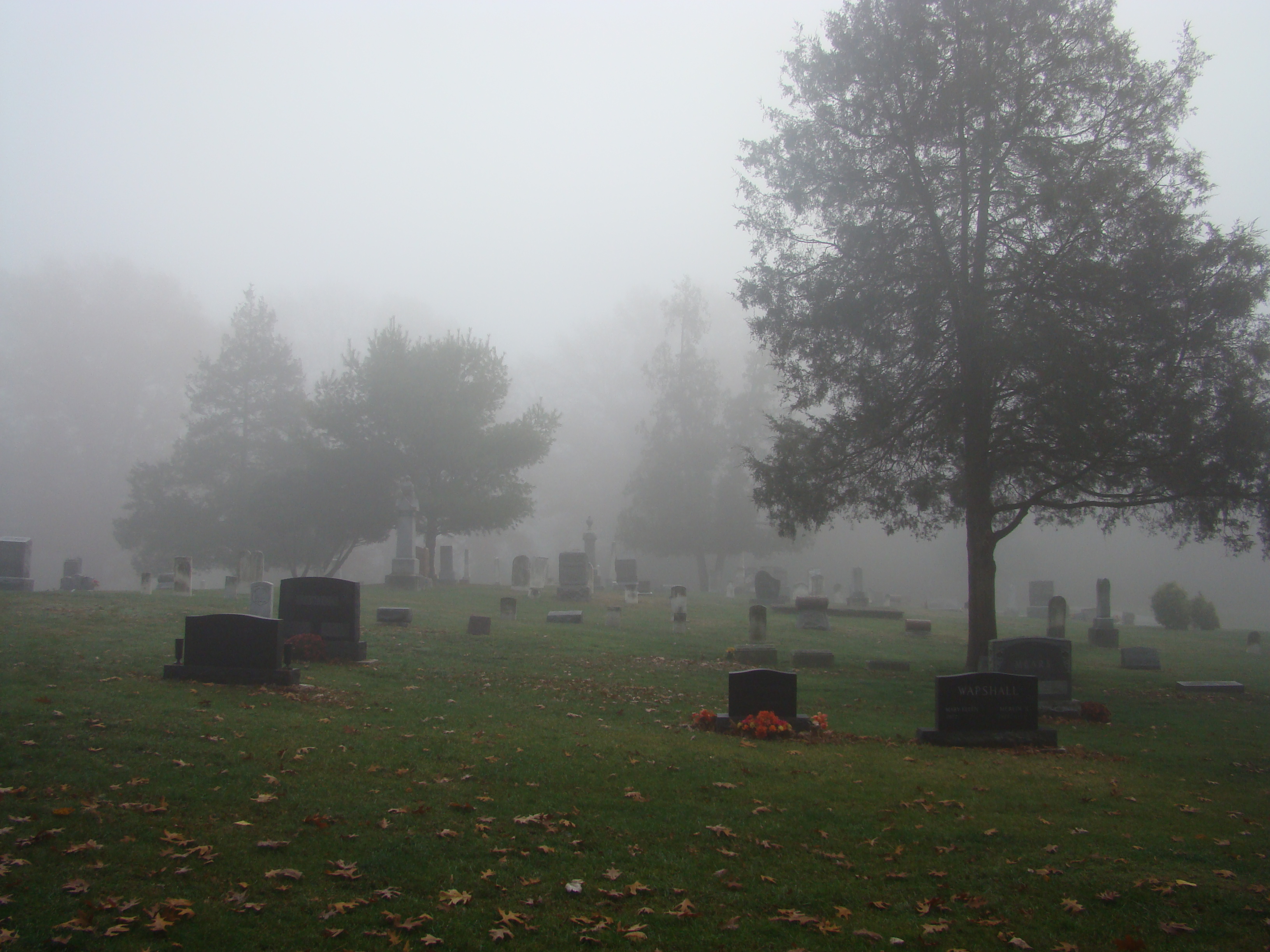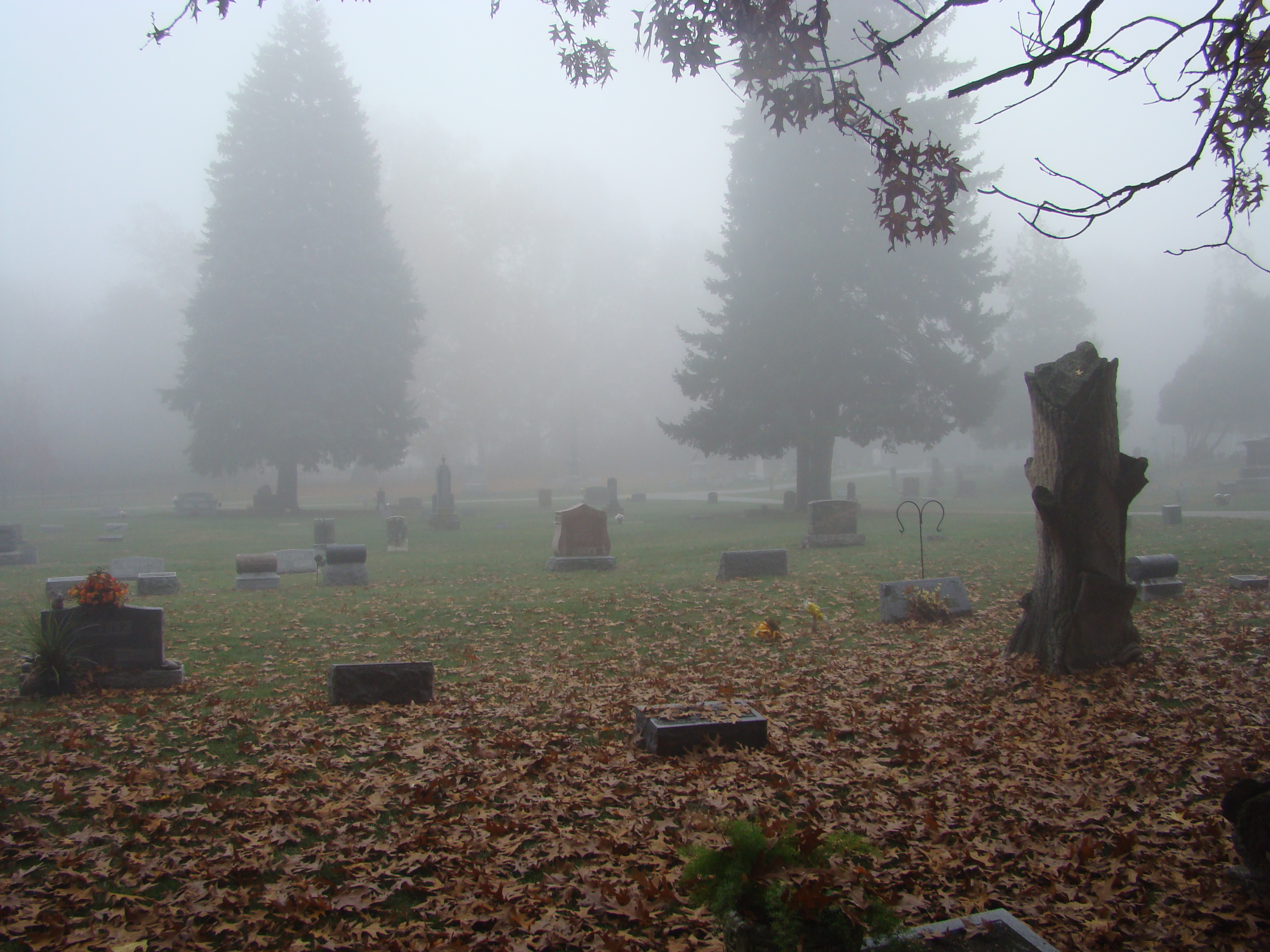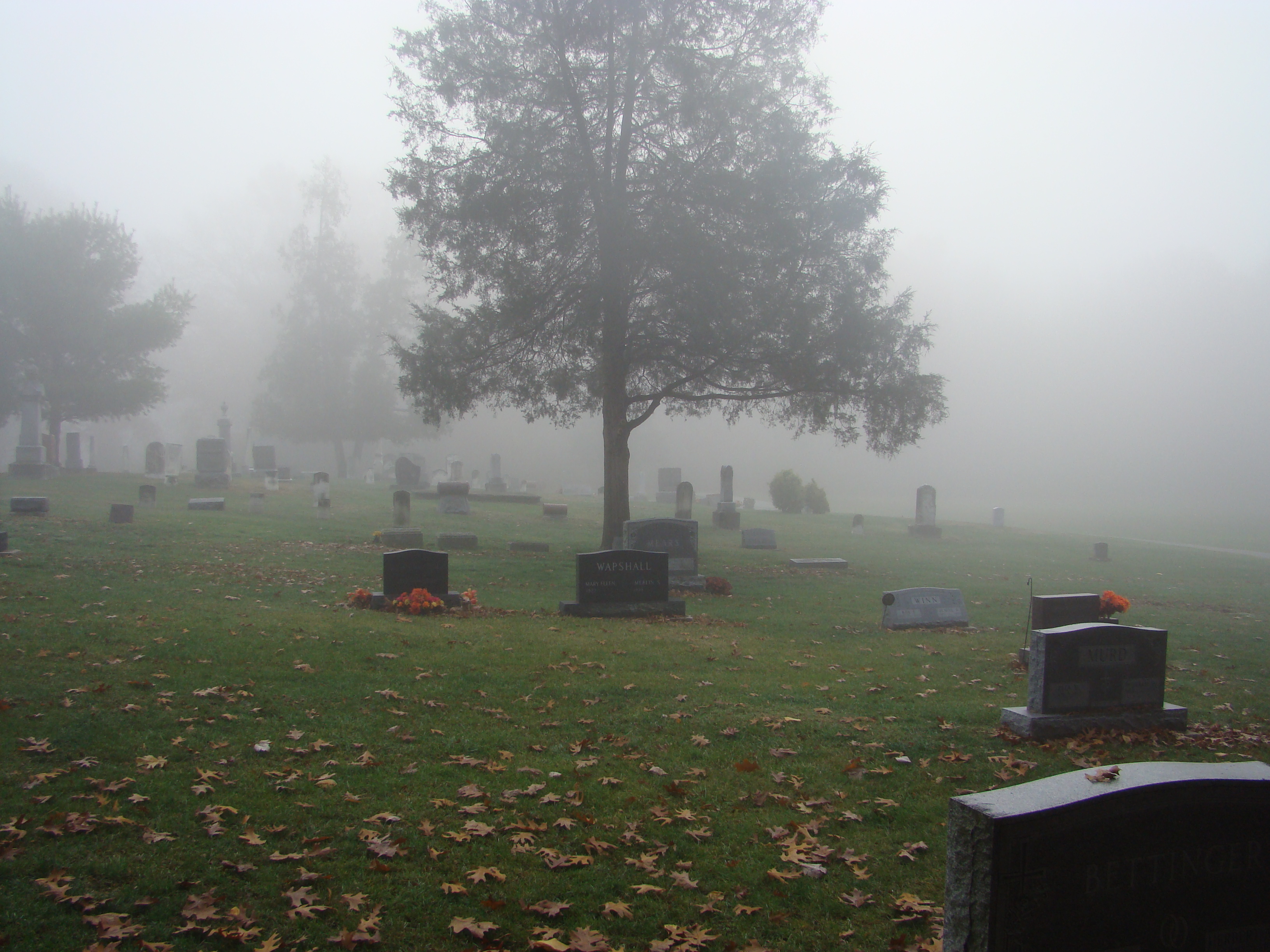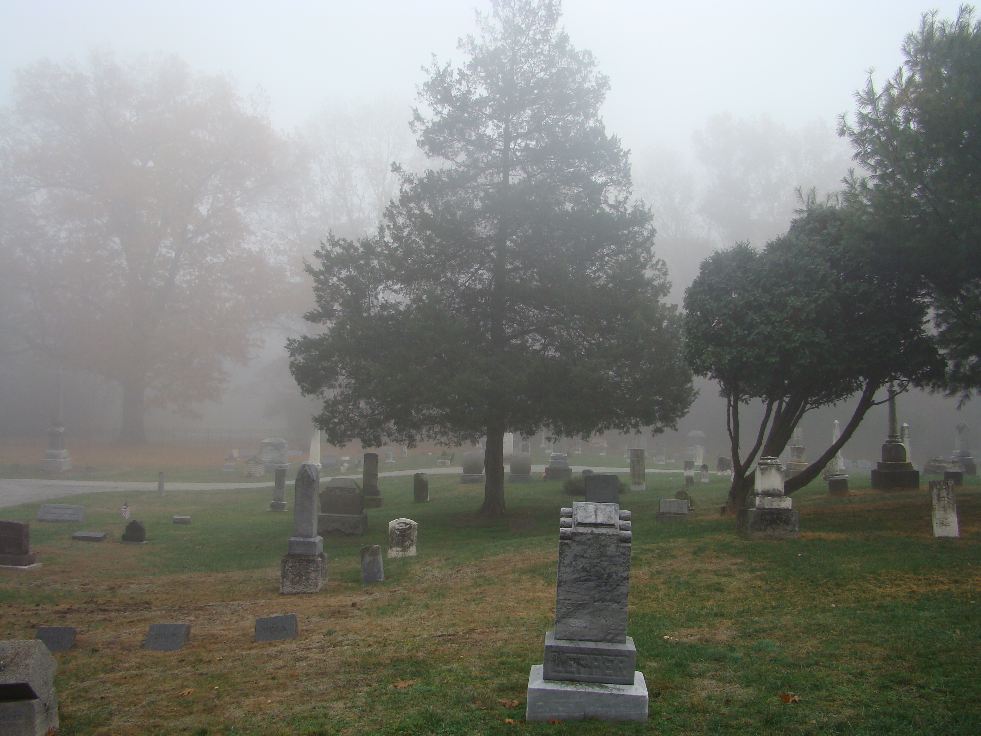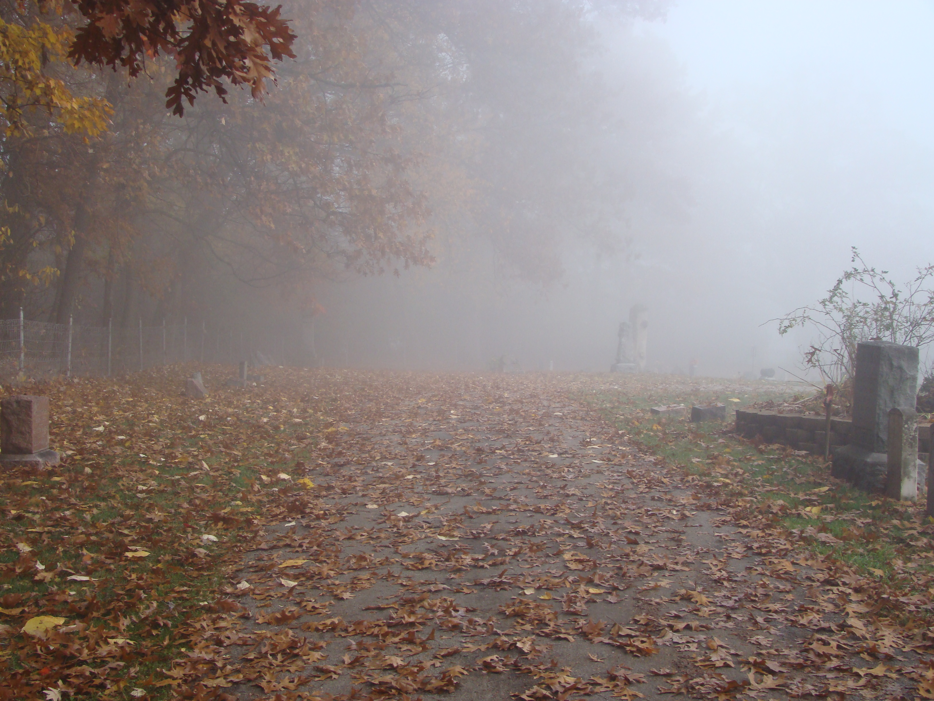 On Wednesday morning we went on the air live at 9:00am from the Lady in the Attic home on Toledo’s Eastside.  Mike, John, Becky and I arrived early at 8:00am to set up equipment. Once on the air, I was interviewed by Chris Vickers while the team worked an EVP session from the Attic, We did not capture anything paranormal but had fun working with WTOL 11 news. After the live broadcast we received tons of emails and blogs to our web site as well as requests for investigations. We kind of knew doing this Halloween telecast would bring out opinions and personal beliefs from our local audience. We agreed to set up another live show for the following morning.  Mike and I met Chris Vickers at one of our favorite legendary Haunted cemeteries, Wolfinger. The morning was very foggy and seemed perfect for an investigation and broadcast. We set up our equipment at two locations within the cemetery, the first set of headstones belonged to the three children that had died within a week of each other in the late 1800’s. Thomas, Rebecca and Ernest have been known to run along the fence line and throughout the cemetery, now they were being video taped and recorded during the entire broadcast as well as our longtime friend Eliza Ford, You might remember her name from one of my earlier investigations to this legendary haunted hot spot.  We shared air time between both locations but neither Eliza nor the children felt like being seen live on television during the broadcast.  I’ve included several pictures from Wolfinger cemetery that were taken during the broadcast. TOGHS would like to thank Rebecca Gilles, Chris Vickers and the entire staff at WTOL Toledo 11 news.