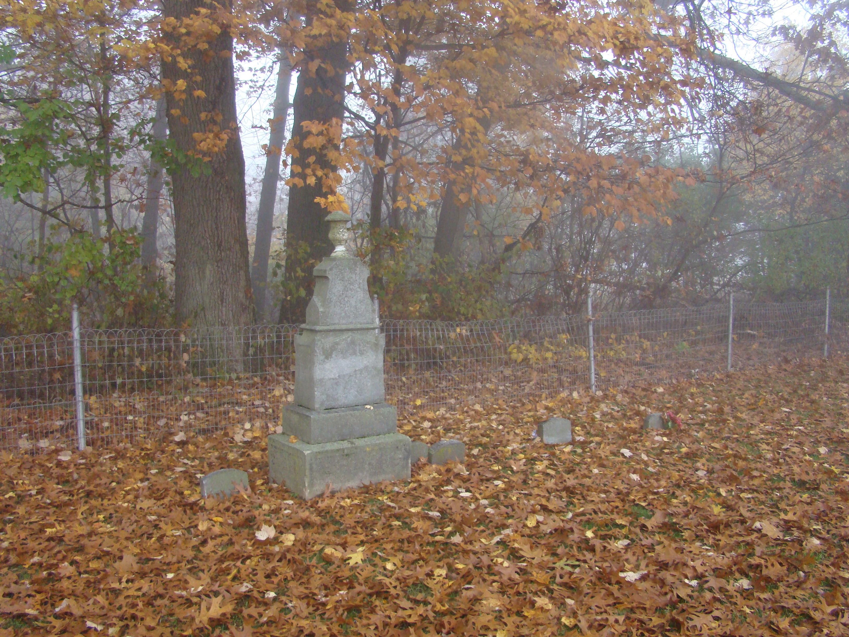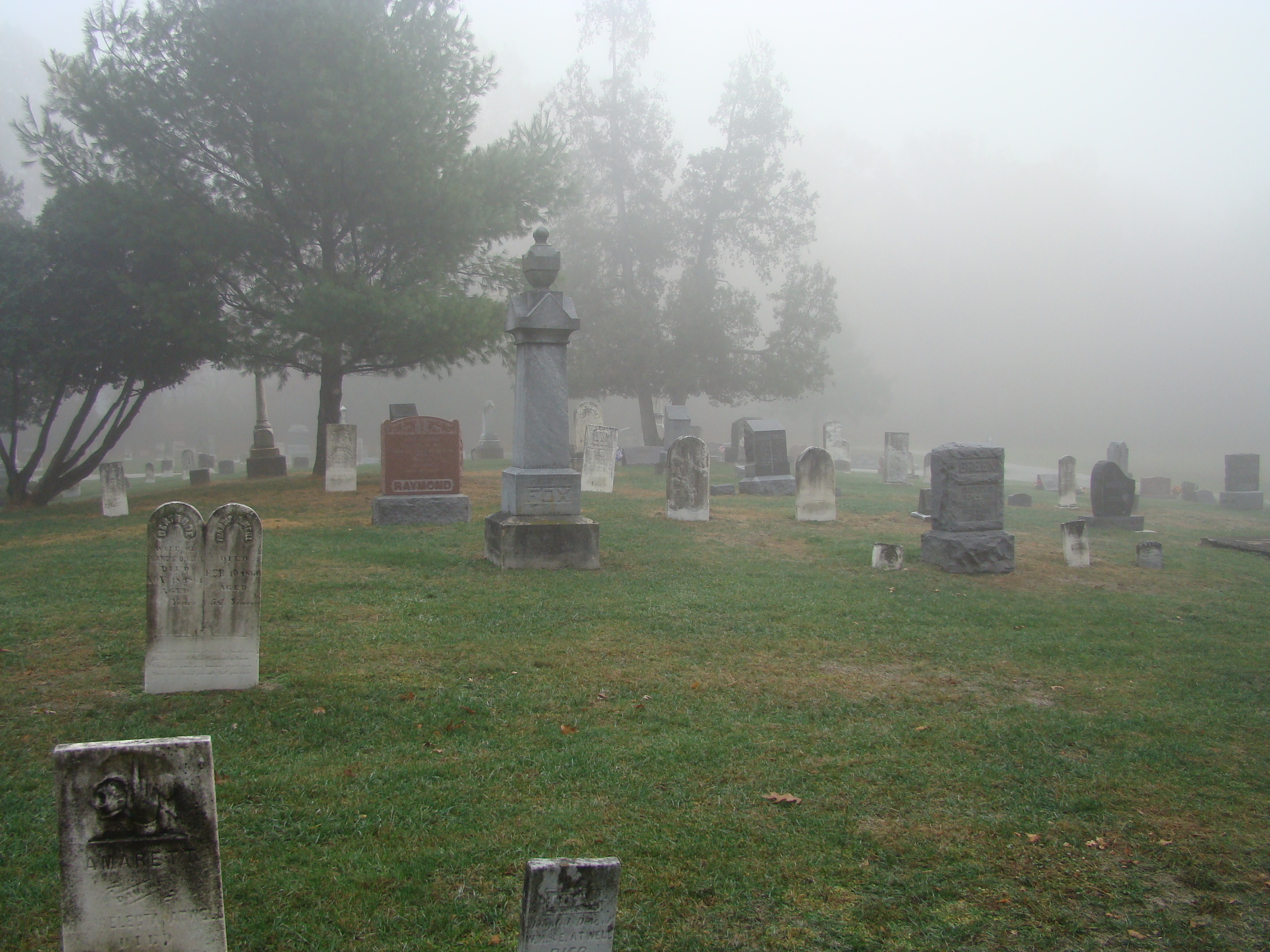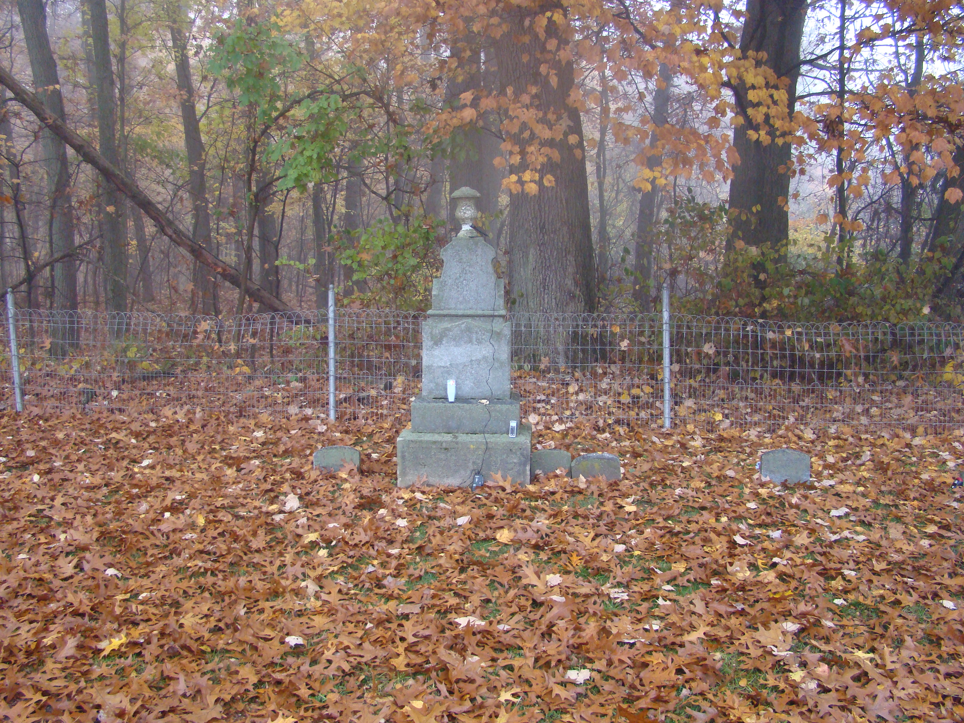 Legend has it that along one of the three wooded edges of the cemetery there are the graves of two adults and their three children. The children’s marker had no last name visible but their first names as well as birth and death dates could be clearly seen. The names were “Thomas” (8), “Rebeca” (10) and “Ernest” (6). All members of the family are said to have died within weeks of one another. The children have been seen playing in the cemetery near their graves. A girl of 10 or 12 in a blue dress with a white pinafore has been seen the most. I invested the Ford family resting spots as well; I feel that Eliza Ford is the woman that supposing haunts the cemetery too.