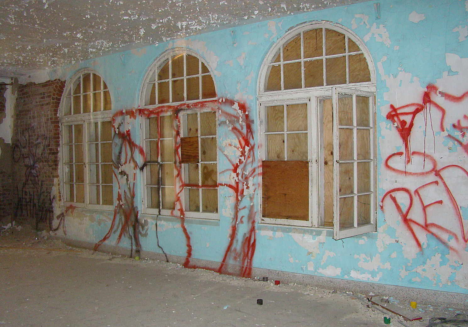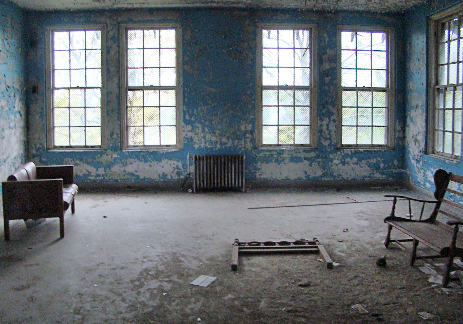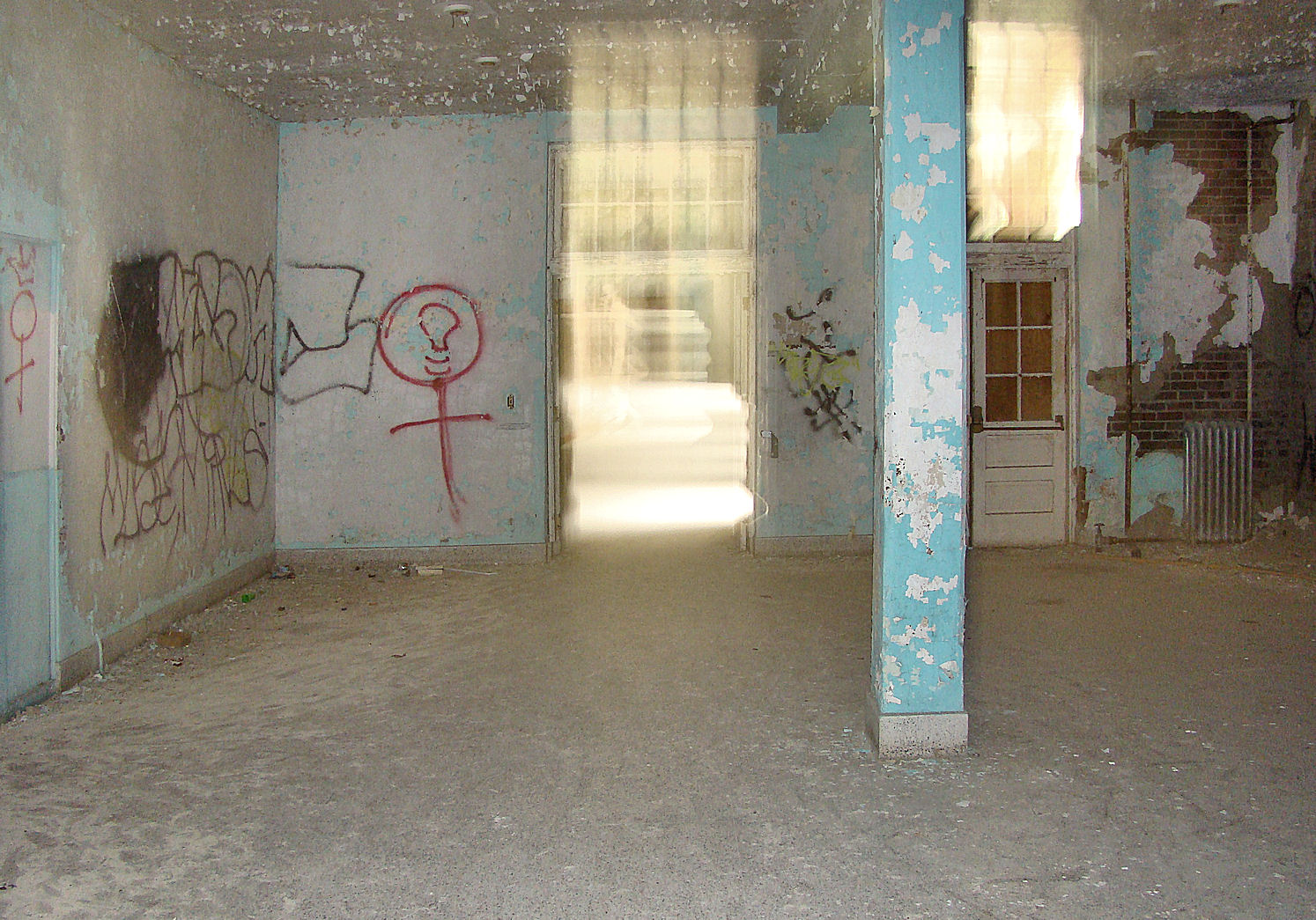 The old tuberculosis ward is the sole abandoned building remaining on the grounds of the Ridges. It was built in 1924 on top of a large hill, totally isolated from the rest if the facility. In the late 70’s, the building became the “Beacon School” for mentally challenged students and young adults. It was abandoned in the early 1980’s. Over the years many of the other buildings have been renovated and are now being used by the University. Some are used for classrooms while others are for storage; the large main building (formally the old Athens Lunatic Asylum) is now the Kennedy Arts Museum. The TB ward is the only building that remains untouched and abandoned. It stands alone on top of the hill, just above the cemetery.