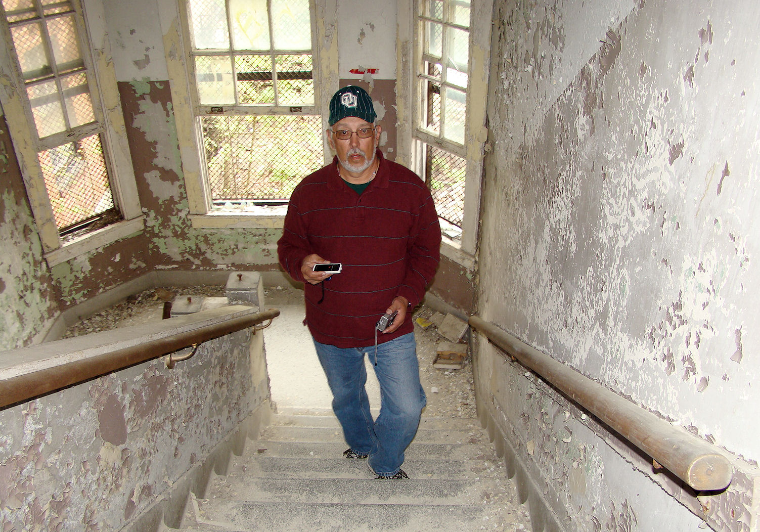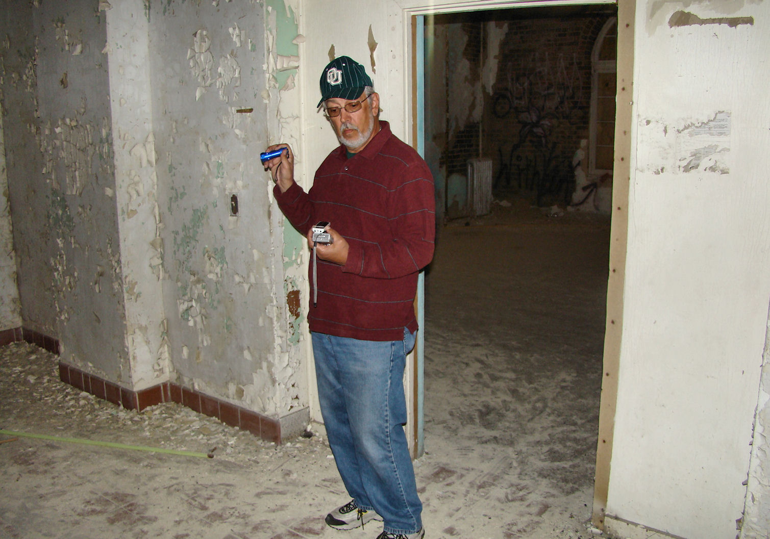 Butch, Jeff and I revisited the old Tuberculosis Ward this past April. We were able to get into the building via a cellar window that had been removed. Athens is a city full of college kids so it is not surprising that Ohio University keeps this abandoned building locked up tight and closely watched, with every door, window or entranceway sealed. I wouldn’t bet on finding a way in on most occasions. The back fence to the courtyard gets cut occasionally by vandals but it always gets replaced along with any boards that have been pried off the windows. The building is larger than it appears from the outside. There is an extensive basement with boiler rooms and an old locker room that must have been used by employees and what looked to be a music room that still contains the piano. Butch and I entered the cellar first and then went up a flight of stairs to the first floor. Each and every room we passed through seemed to hold its’ history and stories. Butch showed me the isolated room where he had been pushed on his previous visit. Although he wasn’t pushed again we still entered with caution. Some of the rooms are very dark due to the lack of electricity. Luckily for me while Butch was leading us into a very dark room he kept his flashlight on the floor, well, what was once was the floor. After taking two steps in, we discovered that the floor had collapsed into the cellar. After investigating each first floor room, we headed up to the second floor. As I continued on, I wondered to myself what the rooms may have been used for during operations. Maybe it’s best we don’t know, some memories may be better left in the past. Butch and I concluded our investigation of the second floor and returned to the first floor and searched again for the stairway leading to the cellar where we had entered the building. On the way down we entered a really dark room that had bizarre quotes painted on the walls, “Leave before they harvest your corpse” and “They will consume you” Although we didn’t think we encountered anything particularly scary while investigating this abandoned building, you could feel an energy, both positive and negative throughout each and every room.  Once we analyzed our findings, we think we may have captured a voice from the piano room. Below is some more information on the old Athens Insane Asylum, The Ridges including the Tuberculosis ward from our friends at Forgotten Ohio. http://www.forgottenoh.com/Ridges/ridges.html