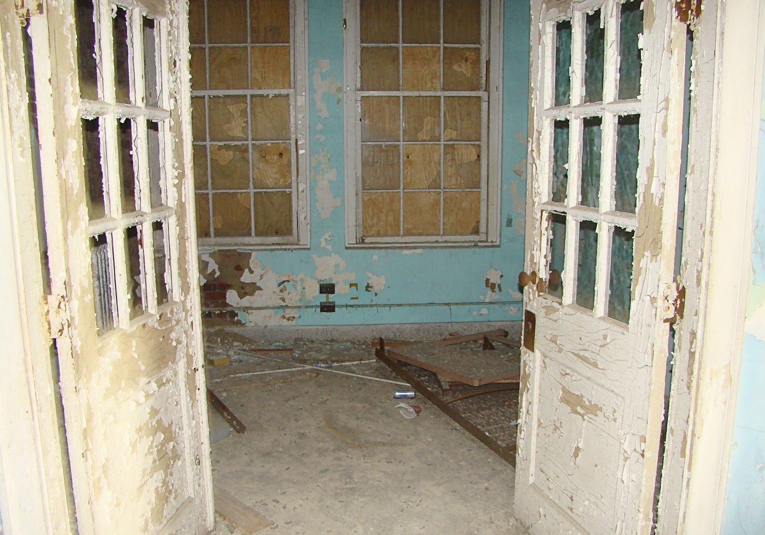 Its locked up rather well, and no one is supposed to enter.. But people do all the time. I just went in today through a window right in front when you pull up. The steel mesh was cut so you could climb right in. Creepy place!